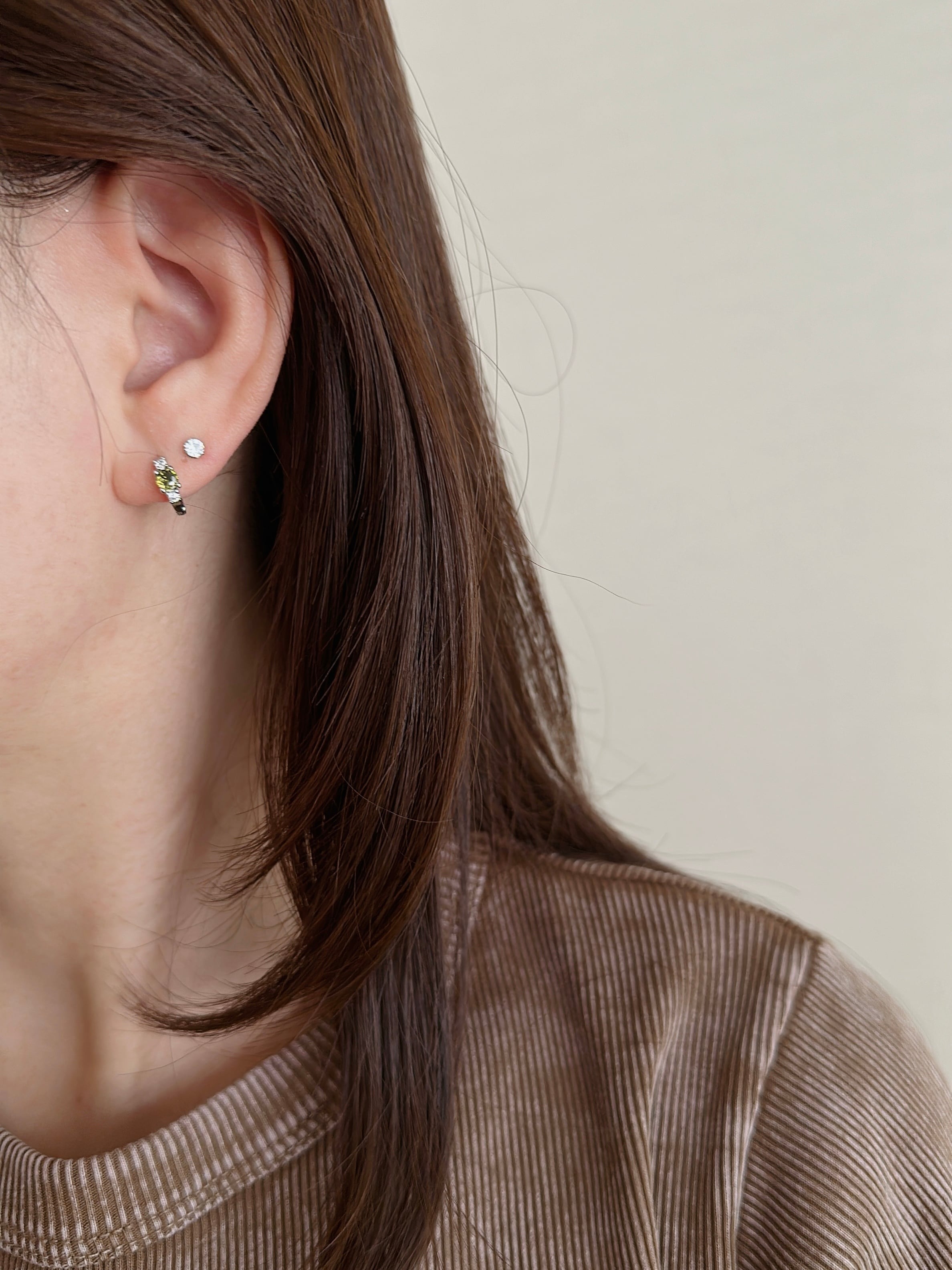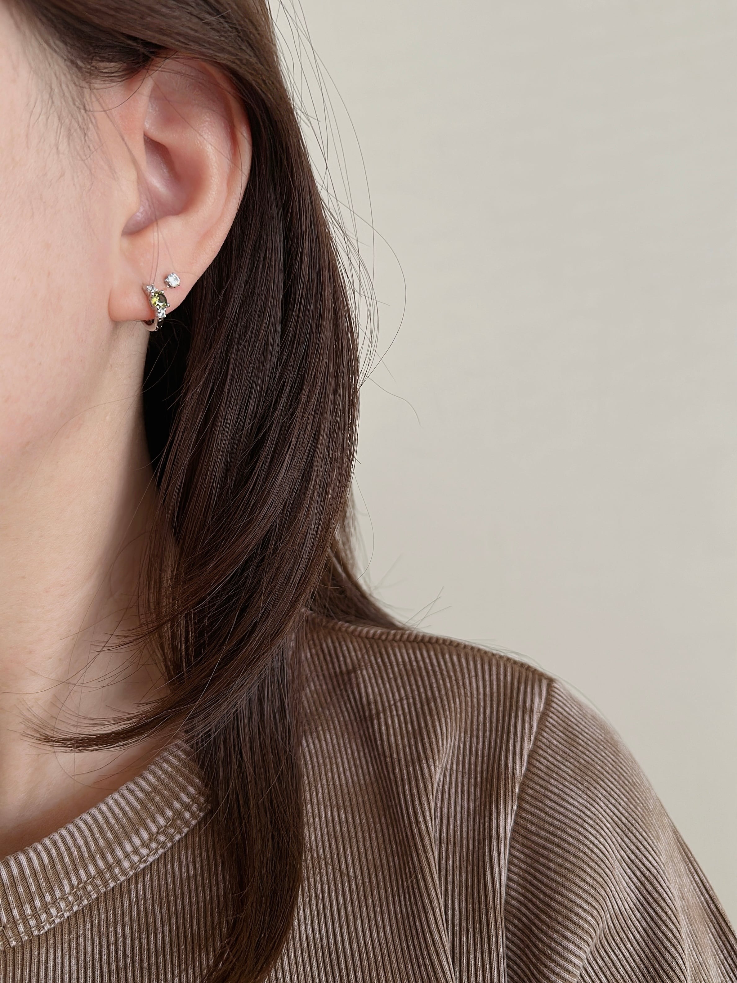 S925 olive stud hoop pierce