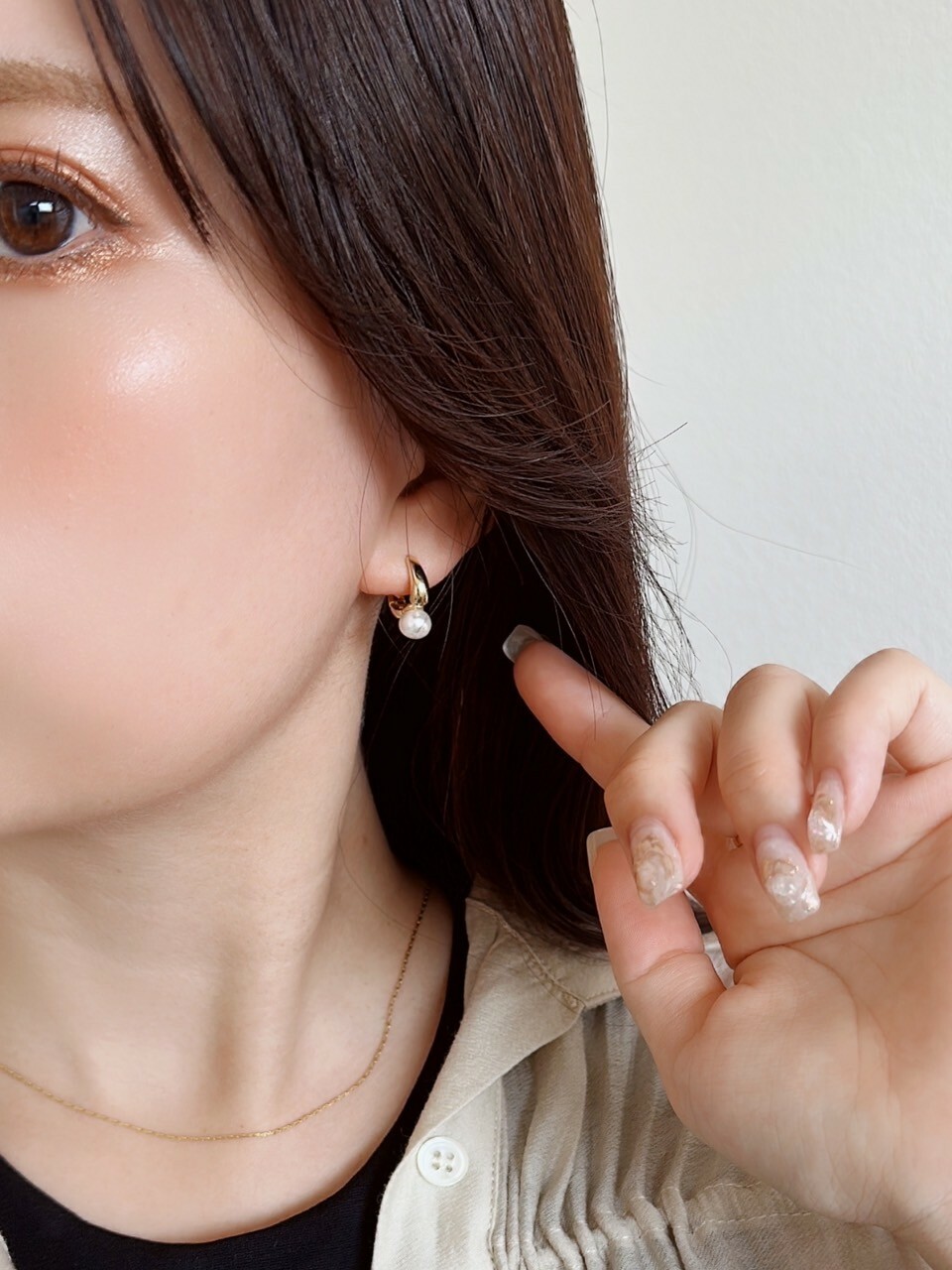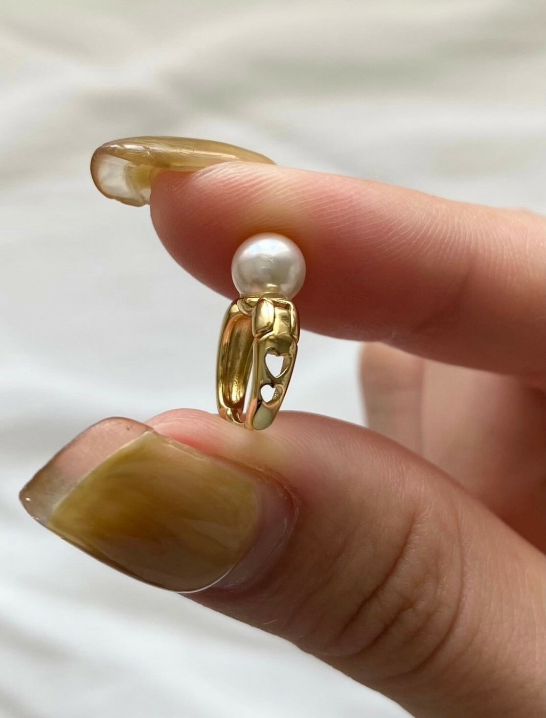 帶有小巧珍珠裝飾的精緻圈環◌ 。˚