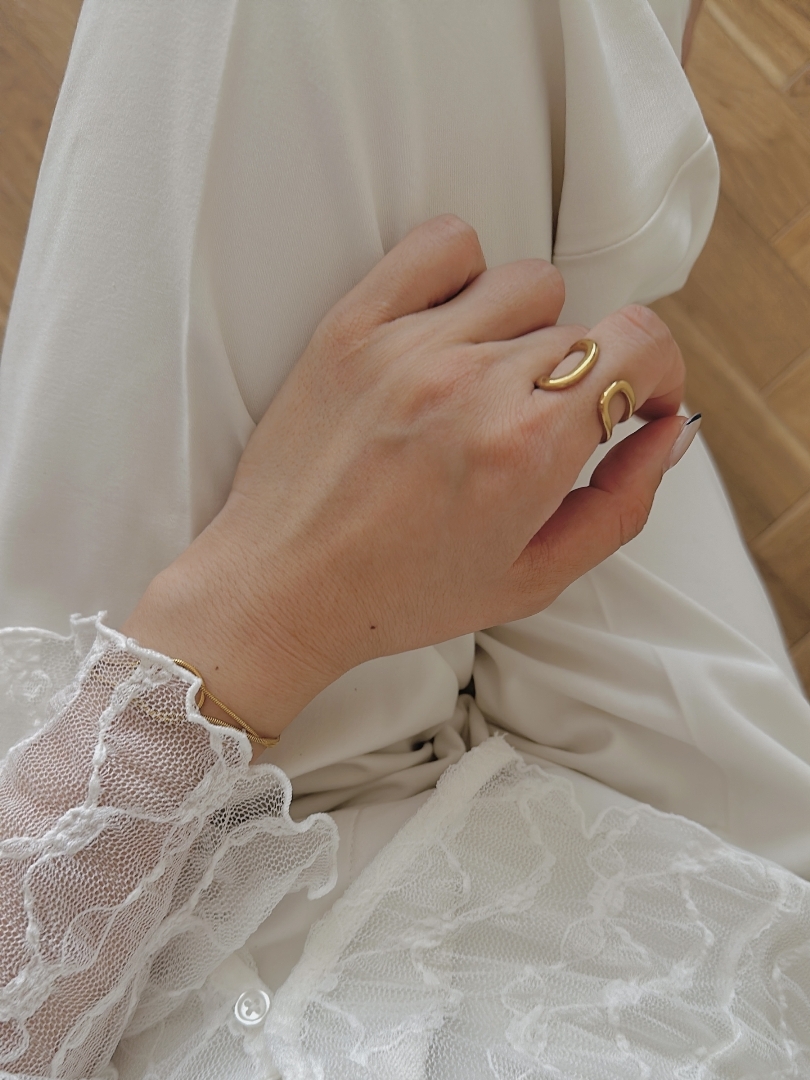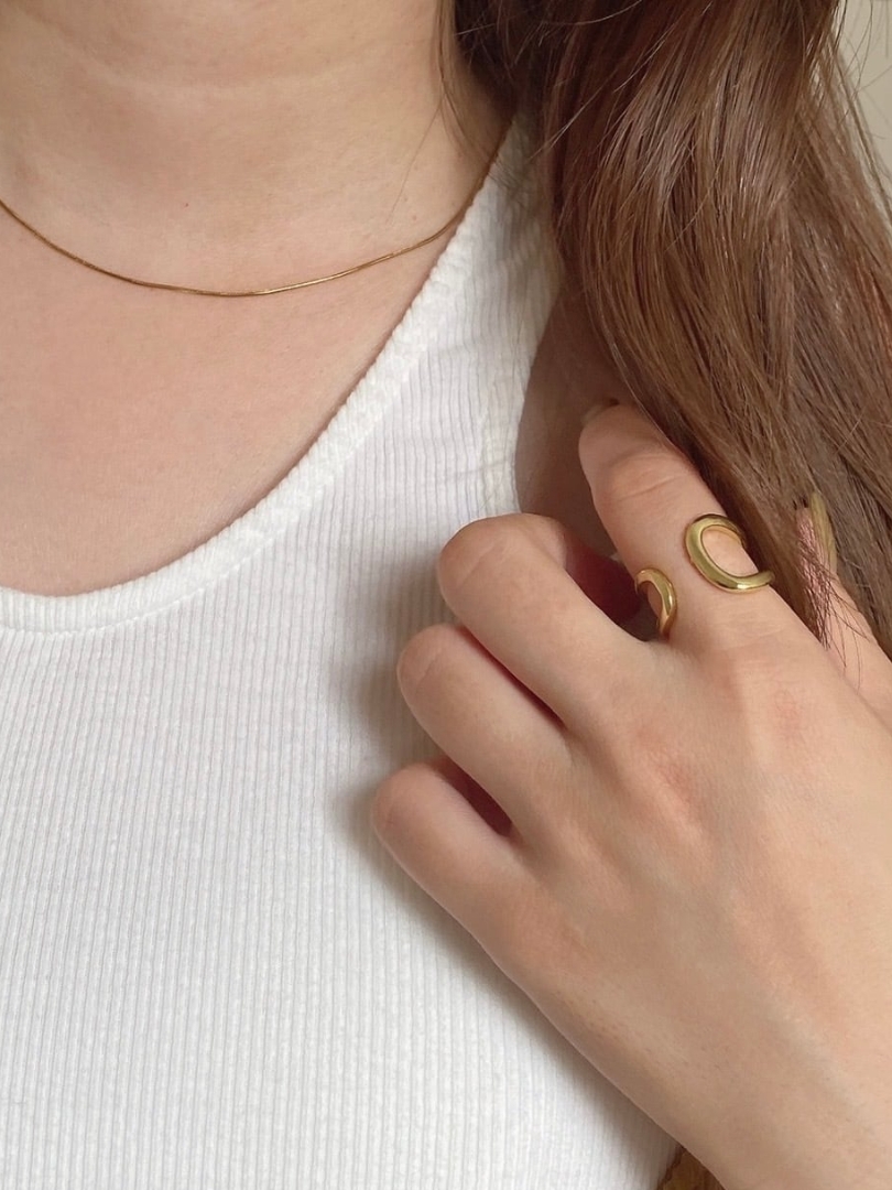 圓狀線條的開口戒,瀰漫著成熟的鬆弛感,