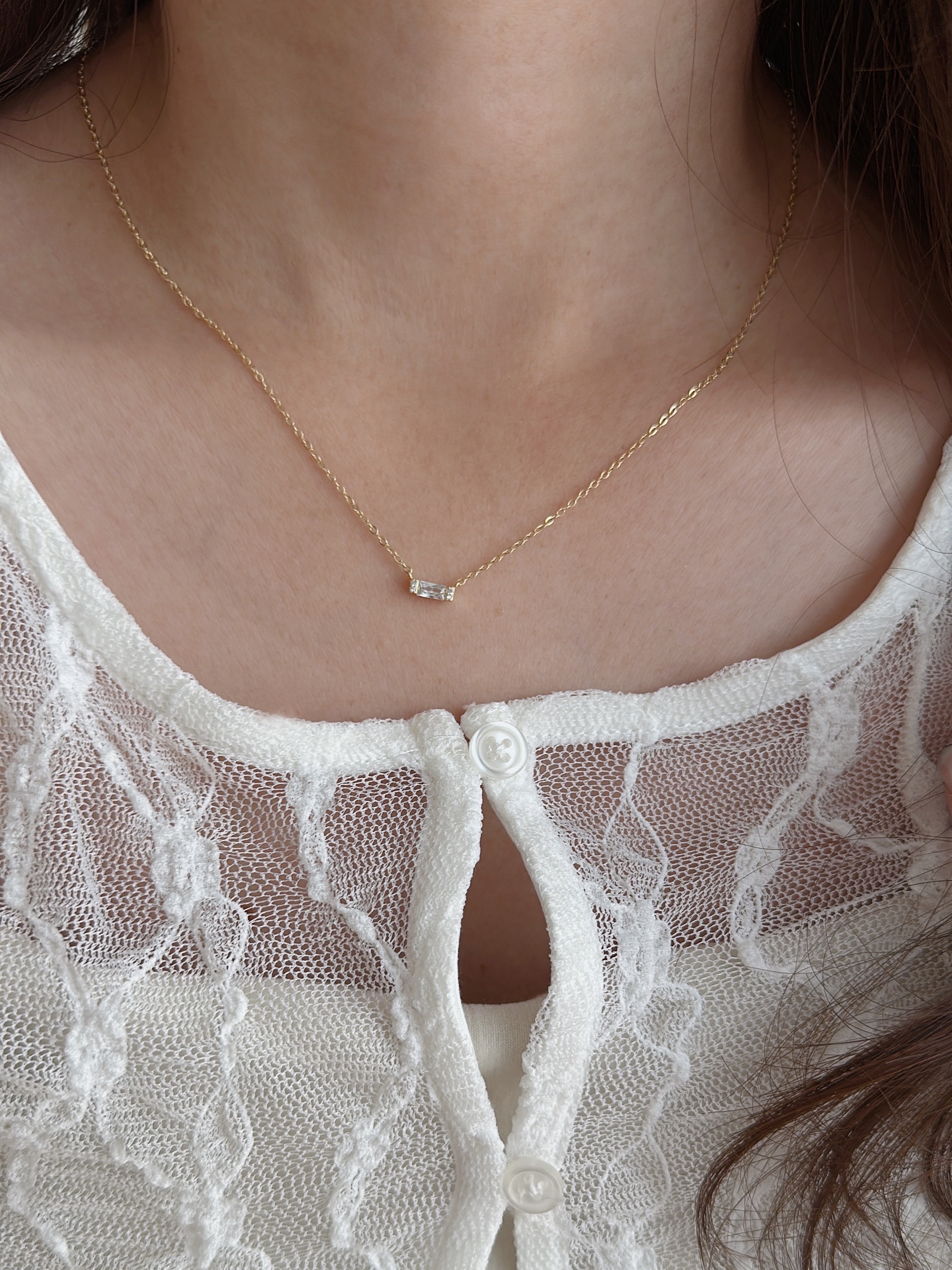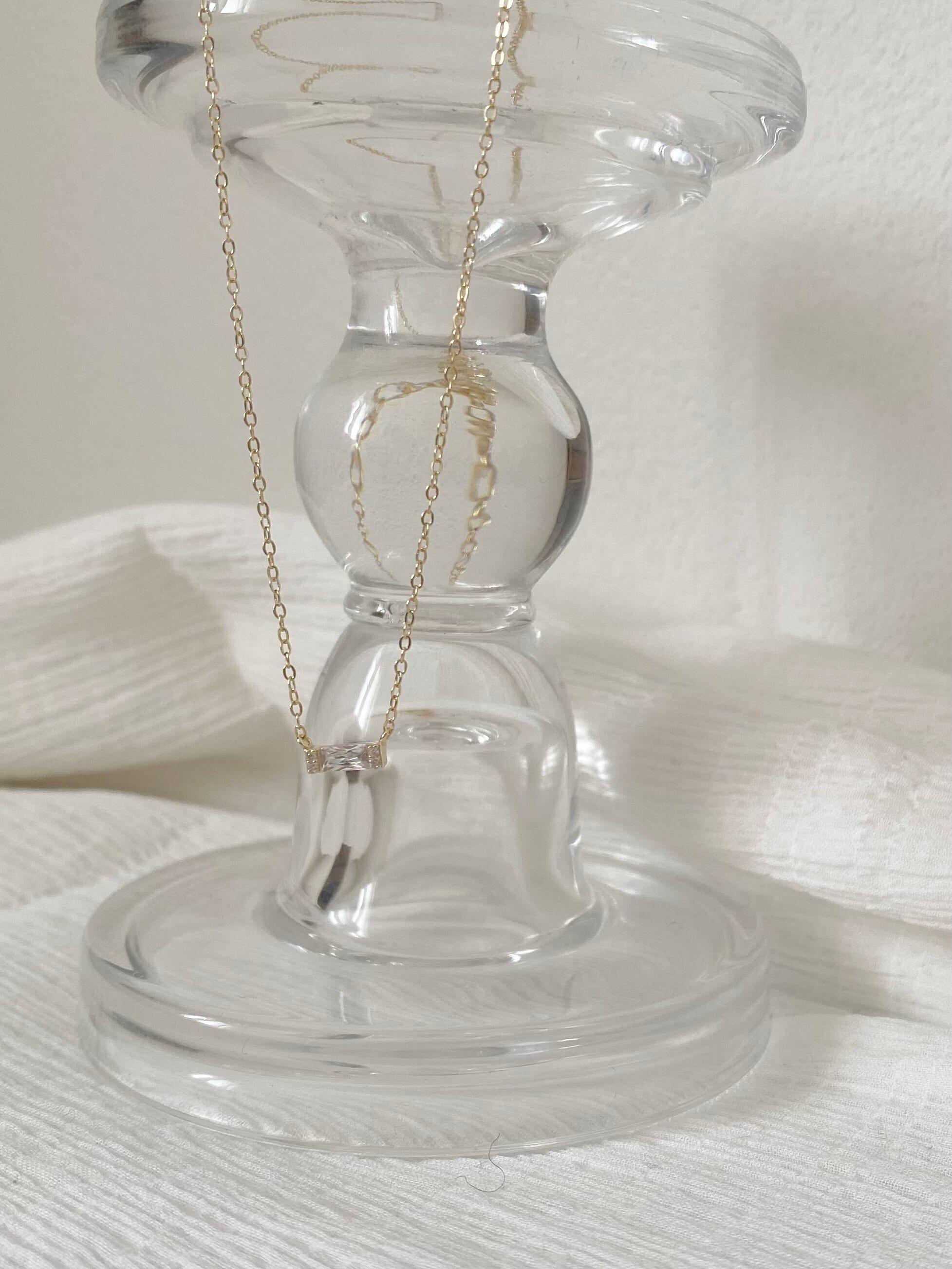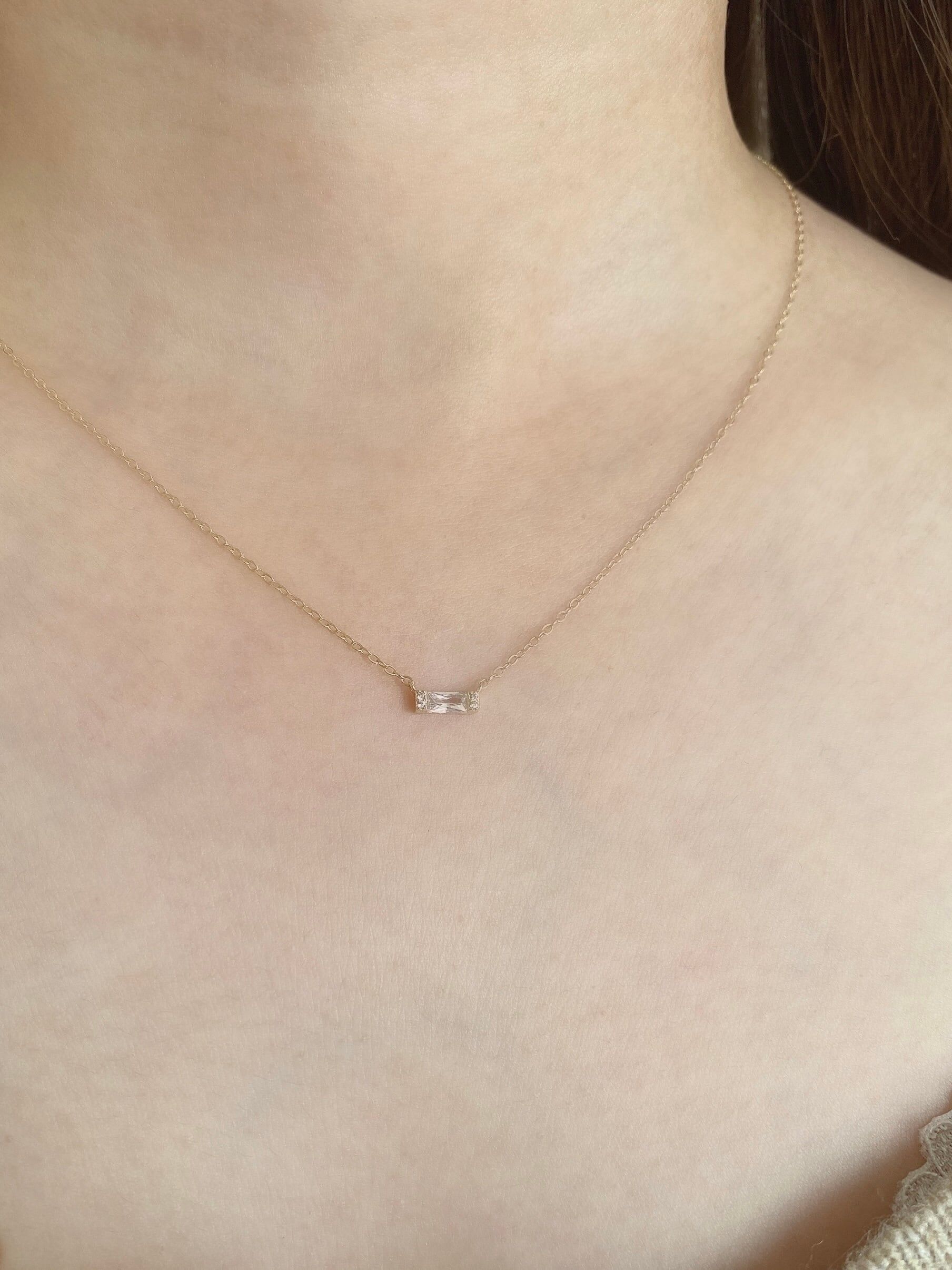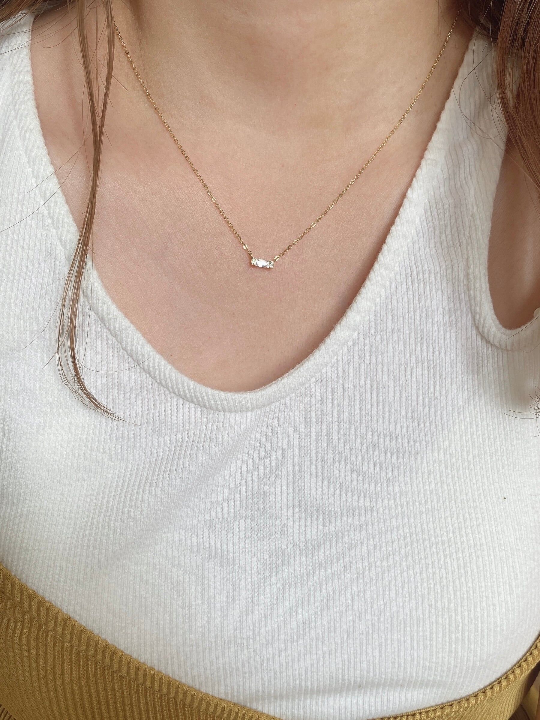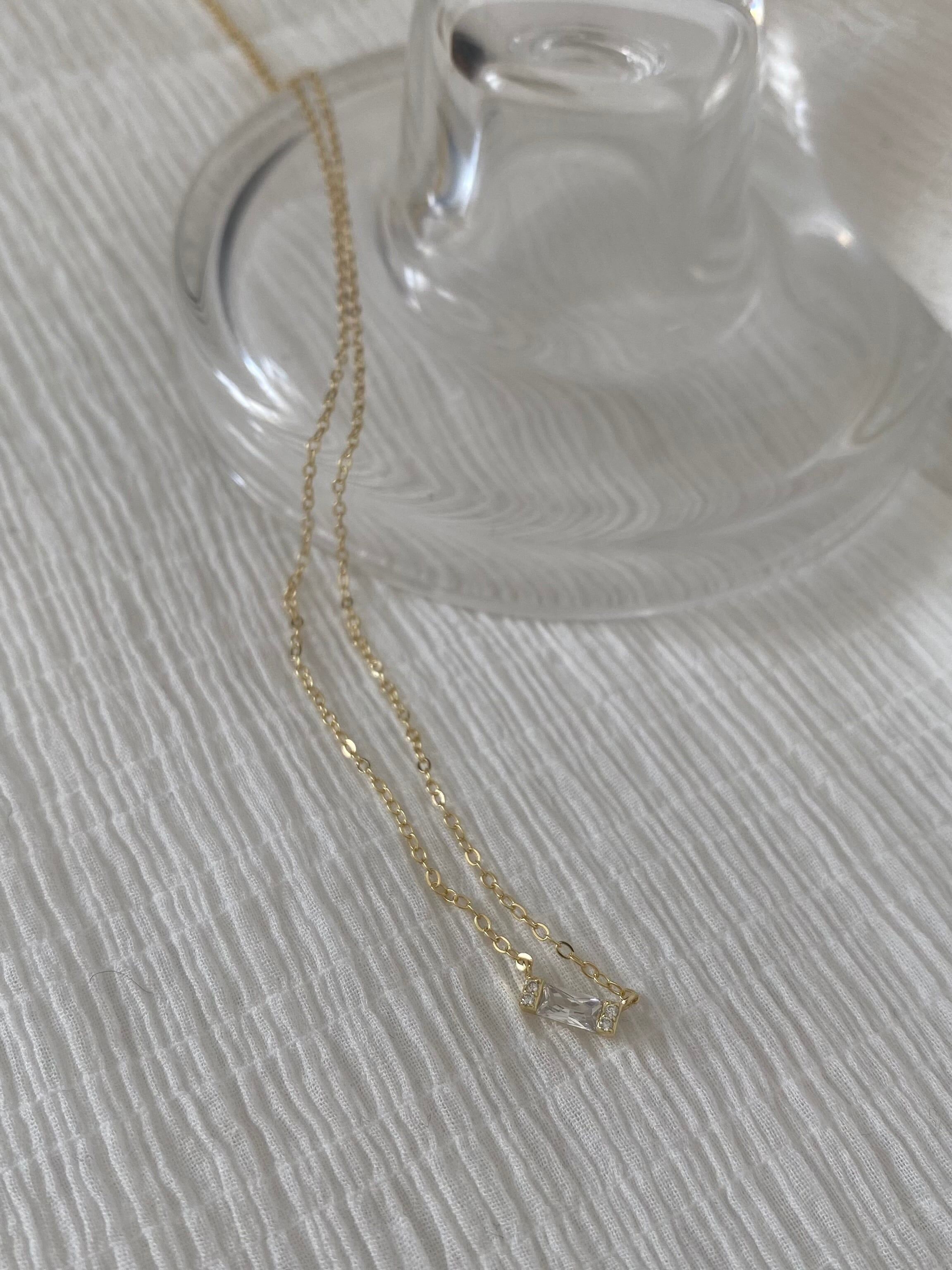 單顆小巧的長方形鋯石,墜飾設計項鍊✧︎*