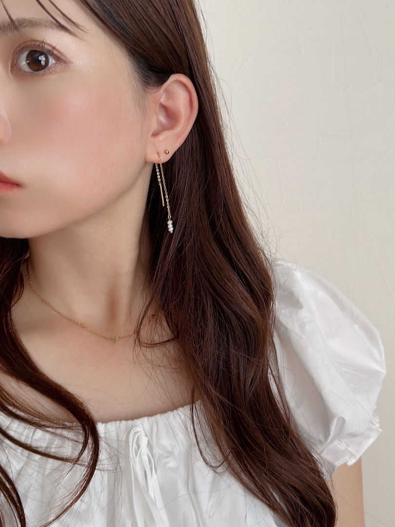 SS long tiny pearl pierce