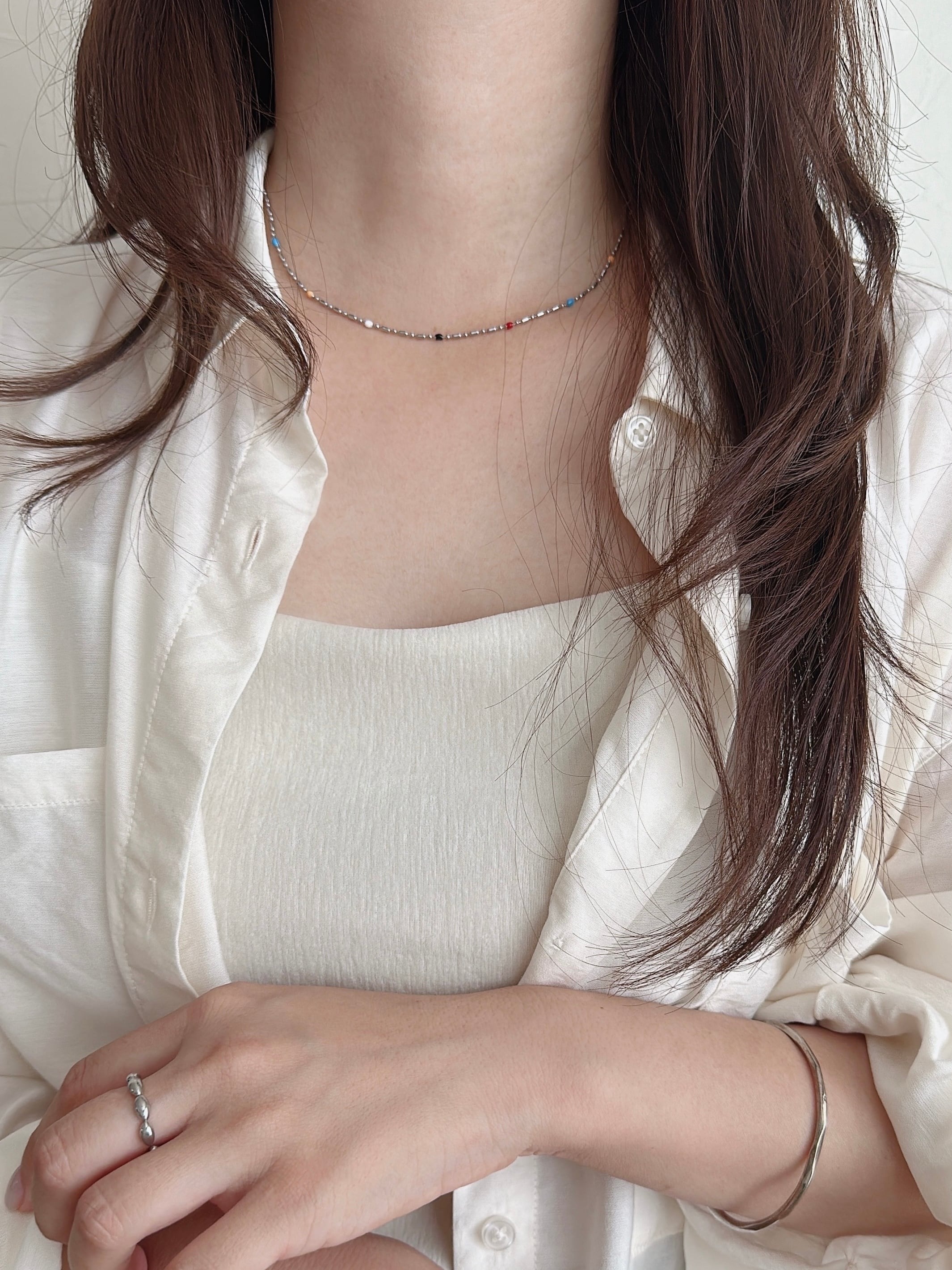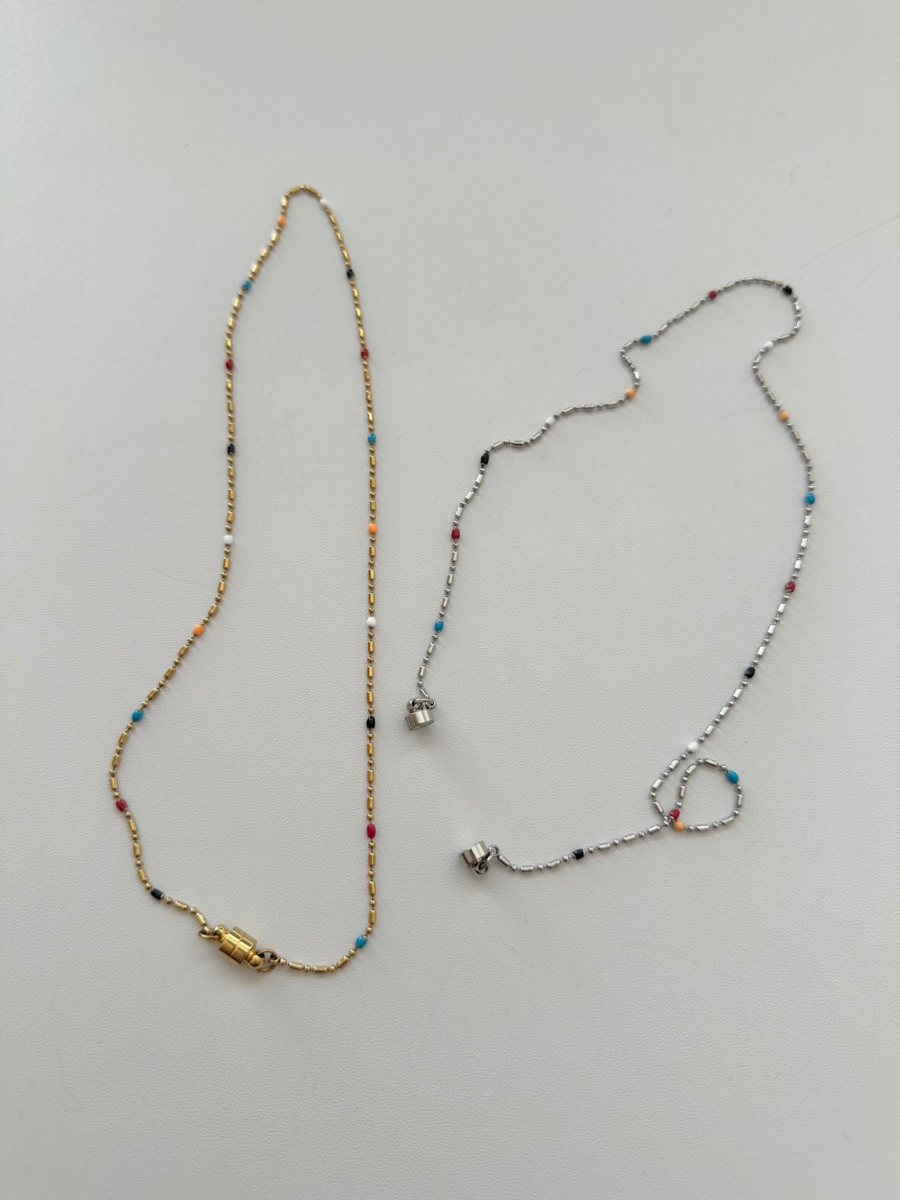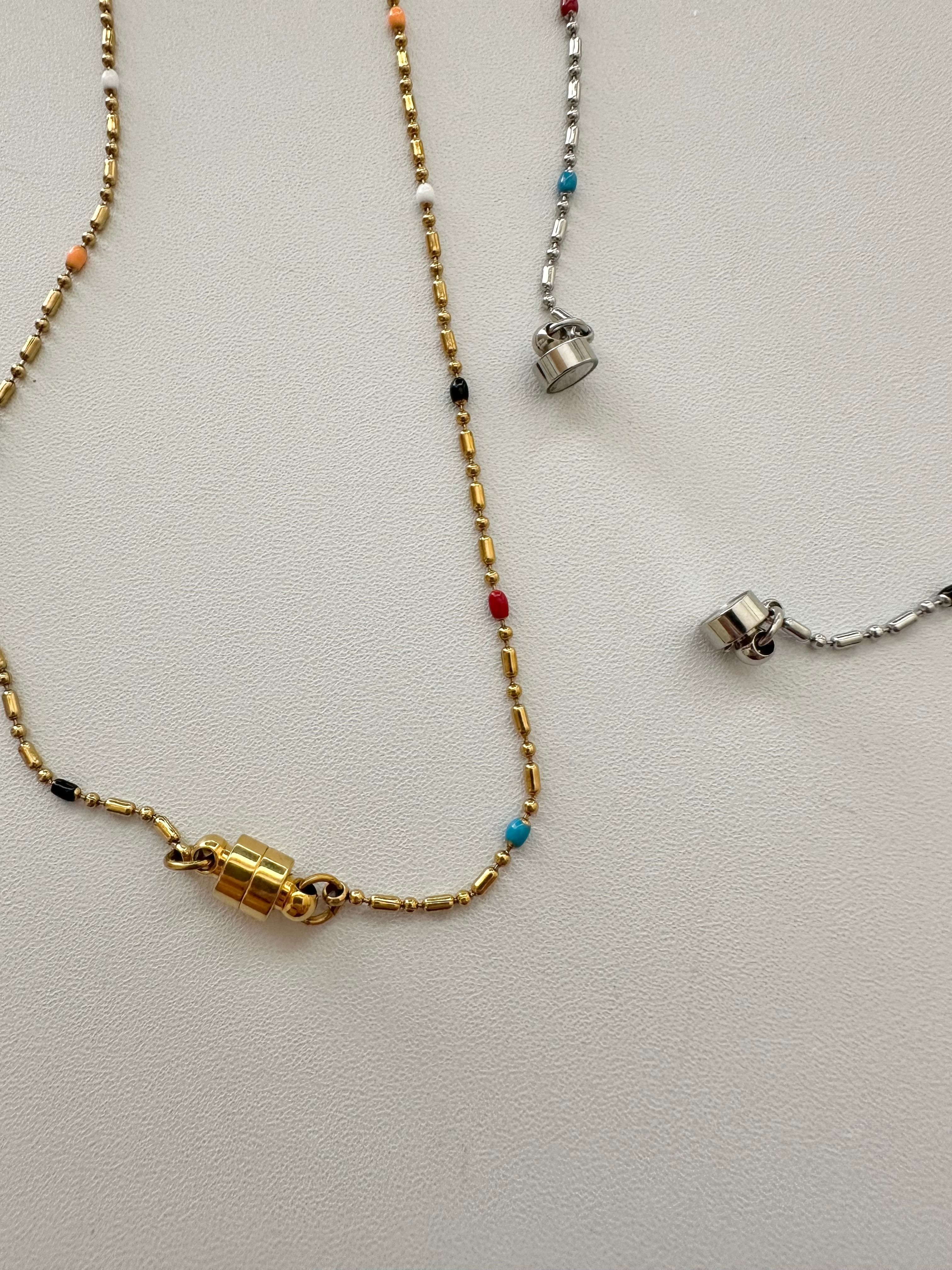 SS magnet random beads necklace