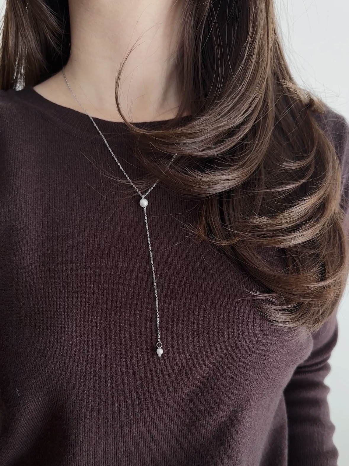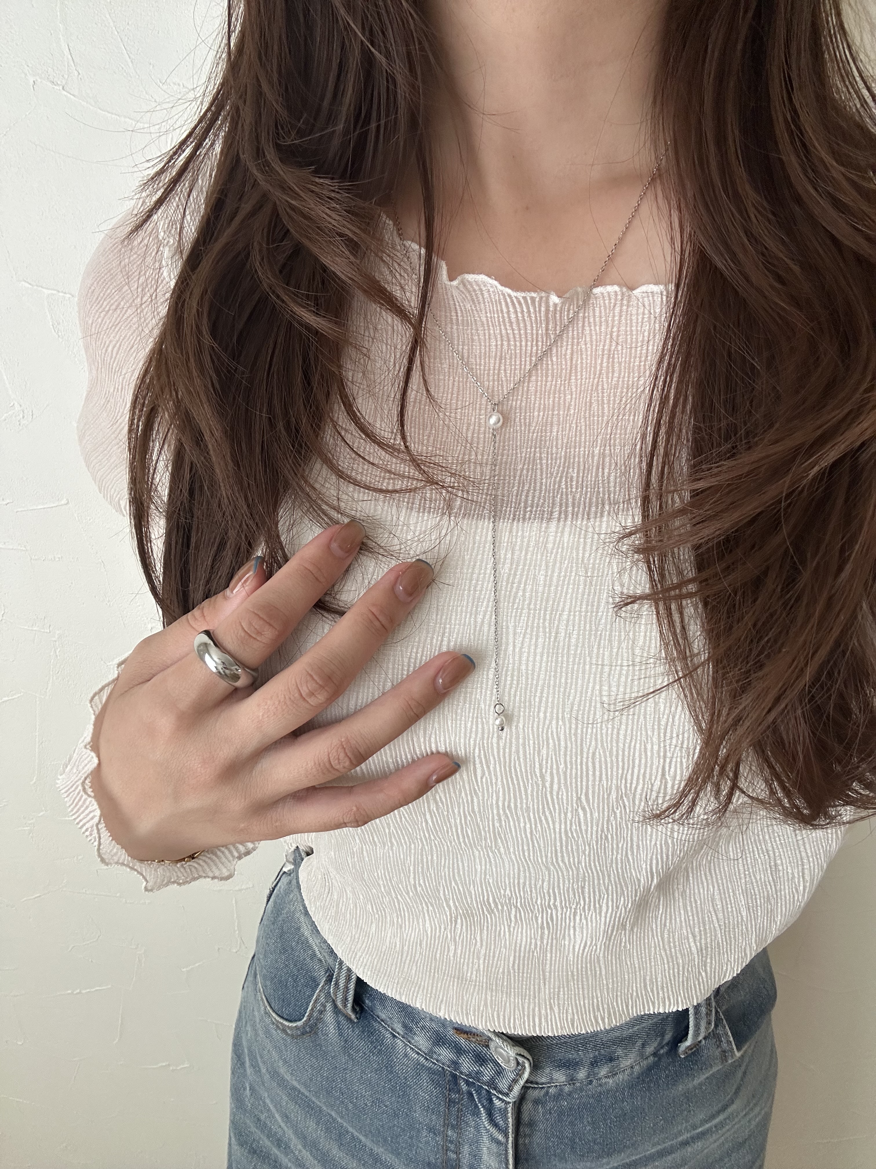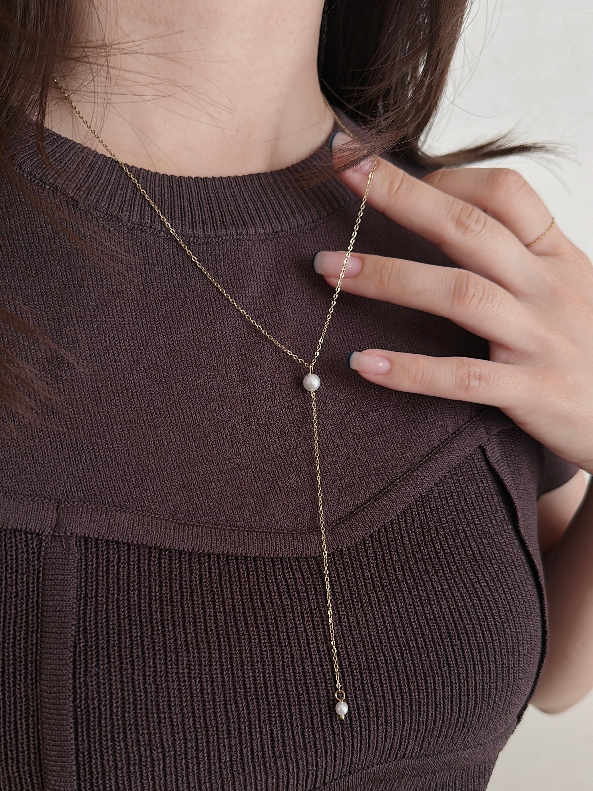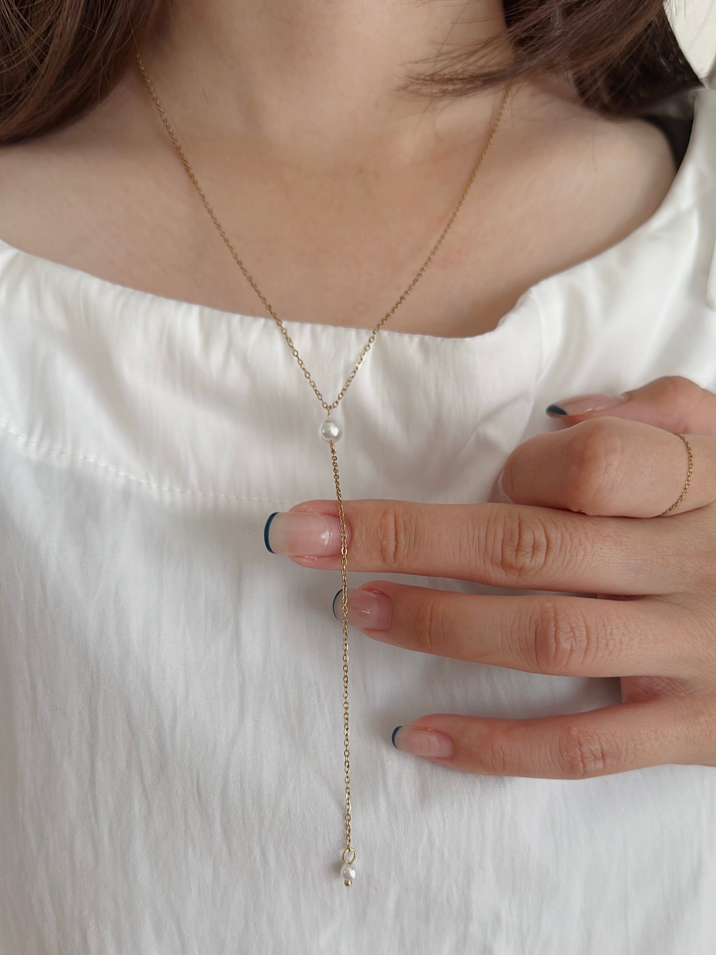 從鎖骨垂落至胸口的Y字鍊,